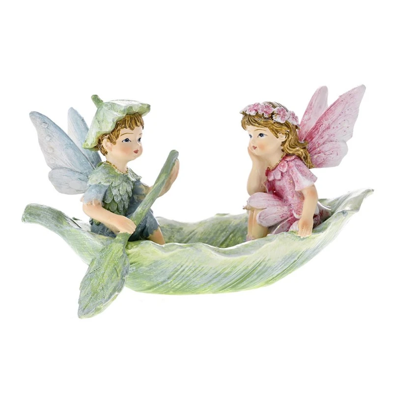 Διακοσμητική επιτραπέζια νεράιδα με ξωτικό, σε βάρκα, polyresin από την iliadis - Διαστάσεις: 13x7x8εκ.
