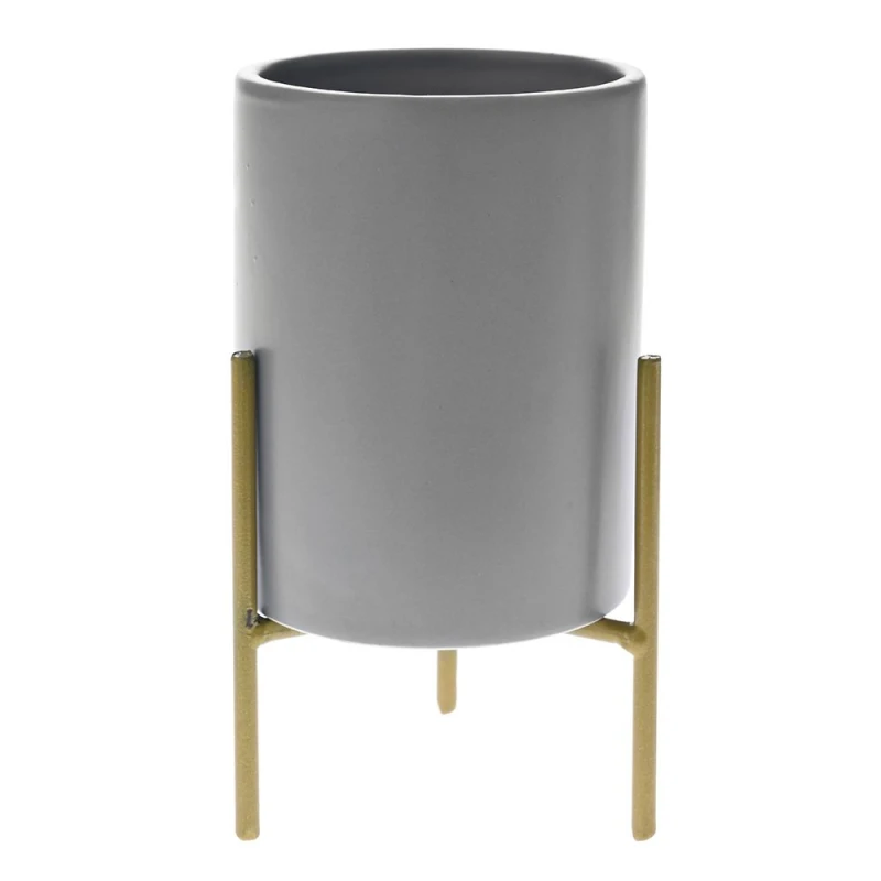 Κασπώ κεραμικό σε γκρι χρώμα, με μεταλλικό χρυσό τρίποδα, από την iliadis - Διαστάσεις: 8x8x18εκ.