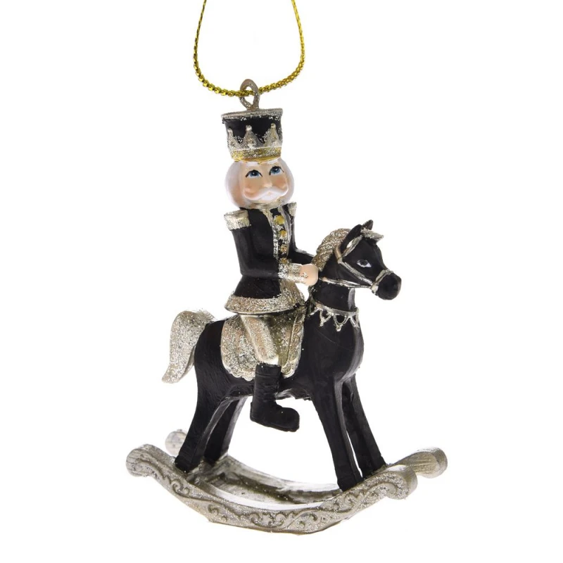Χριστουγεννιάτικο στολίδι κρεμαστό καρυοθραύστης, polyresin, πάνω σε άλογο, σε μαύρο χρώμα από την iliadis - Διαστάσεις: 6,5x3x9,5εκ. - Η ελάχιστη ποσότητα αγοράς για αυτό το προιόν είναι 6τμχ.