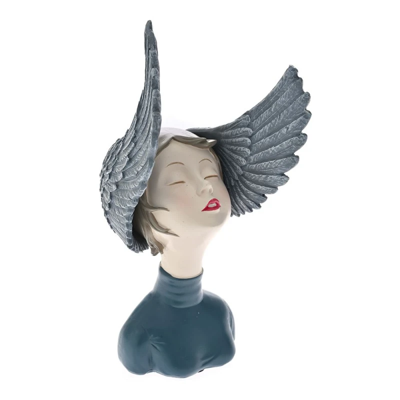 Διακοσμητική επιτραπέζια κοπέλα με φτερά στο κεφάλι, polyresin, από την iliadis - Διαστάσεις: 11x14x27εκ.