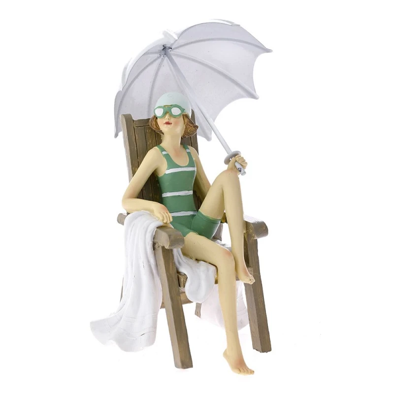 Διακοσμητική επιτραπέζια γυναίκα, καθιστή σε καρέκλα με ανοιχτή ομπρέλα, polyresin, από την iliadis - Διαστάσεις: 10x9x13εκ.