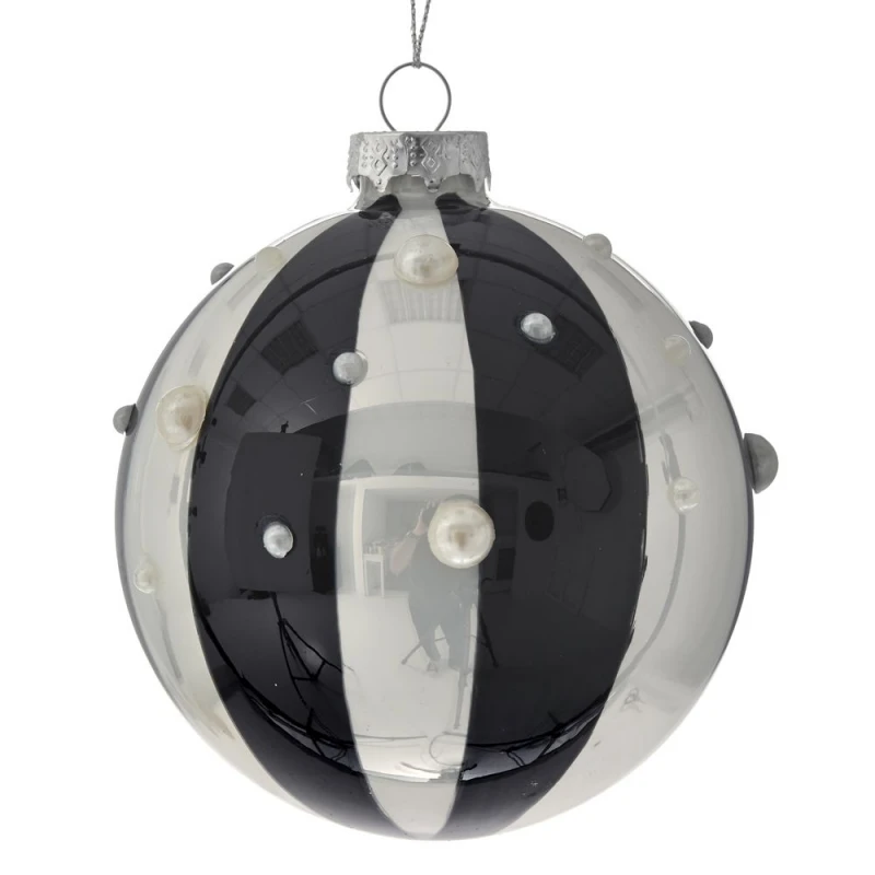 Σετ μπάλες 4τμχ γυάλινες σε μαύρο-λευκό χρώμα με πέρλες από την iliadis - Διαστάσεις: 10εκ. - Η ελάχιστη ποσότητα αγοράς για αυτό το προιόν είναι 2τμχ.