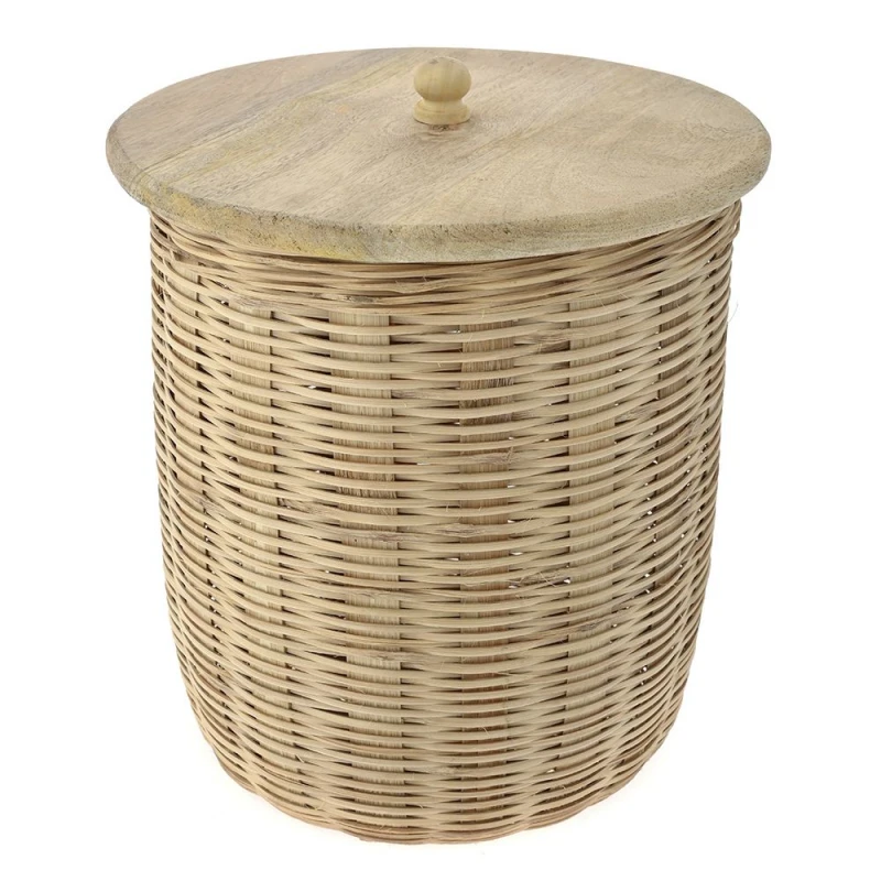 Καλάθι ψάθινο, με αποσπώμενο καπάκι απο ξύλο mango, από την iliadis - Διαστάσεις: 32x32x37εκ.