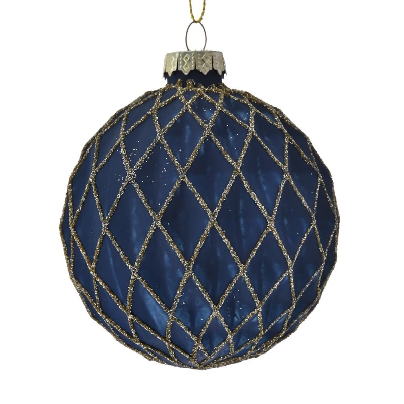 Σετ μπάλες 6τμχ γυάλινες σε μπλε χρώμα με χρυσές ρίγες από την iliadis - Διαστάσεις: 8εκ.