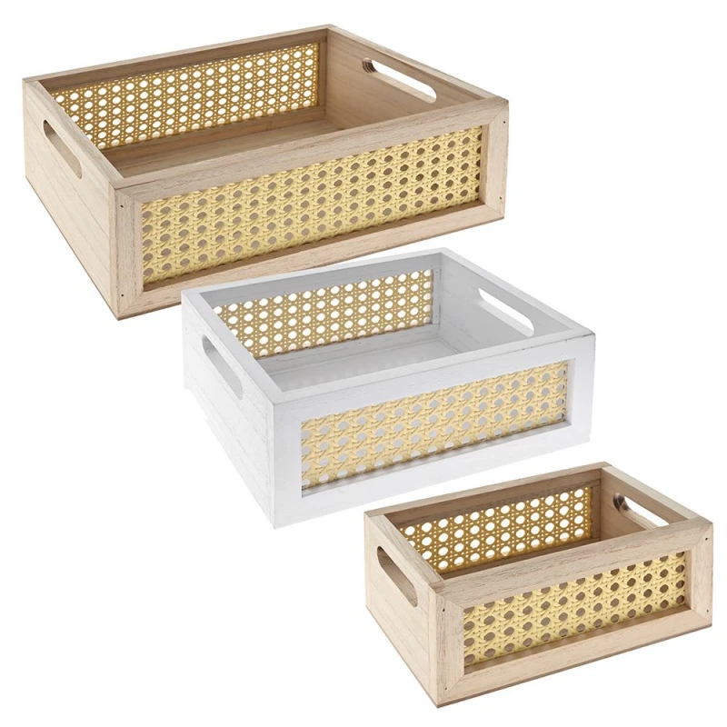 Κουτί Σετ 3τμχ Ξύλινο-Ψάθινο iliadis 30x21x12εκ. 77531