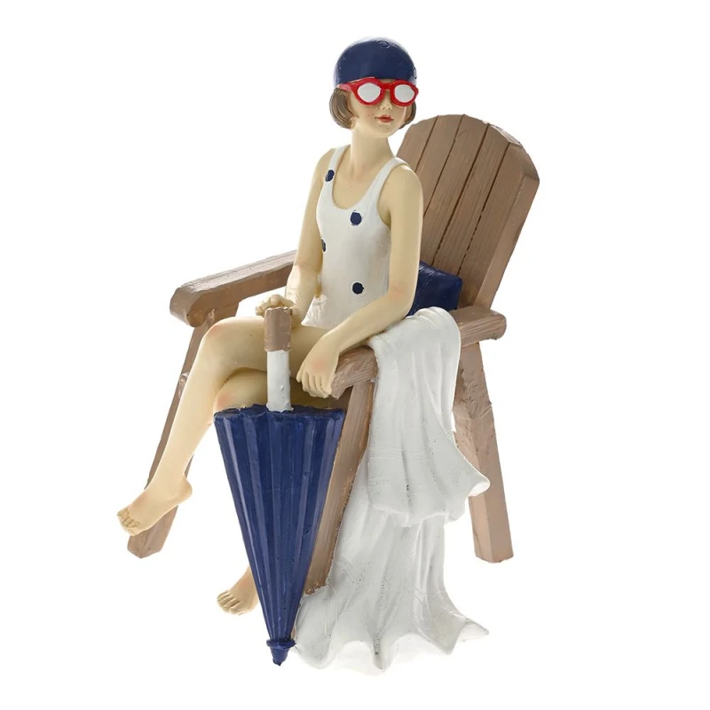 Διακοσμητική επιτραπέζια γυναίκα, καθιστή σε καρέκλα κρατώντας μπλε ομπρέλα, polyresin, από την iliadis - Διαστάσεις: 9,5x9x13εκ.
