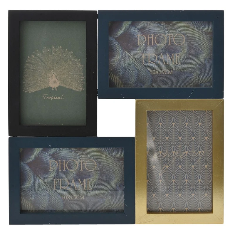 Κορνίζα από ξύλο mdf, 4 θέσεων σε μαύρο - μπλε - χρυσό χρώμα από την iliadis - Διαστάσεις: 29x29εκ.