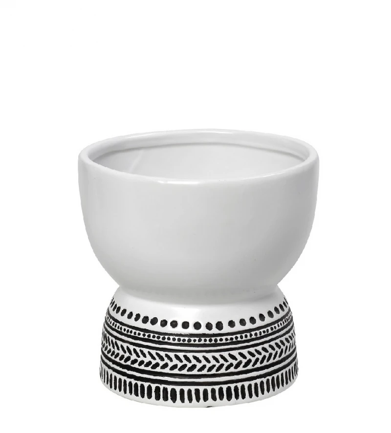 Διακοσμητικό μπωλ κεραμικό σε λευκό χρώμα με σχέδιο tribal από την ESPIEL - Διαστάσεις: 20,5x20εκ.