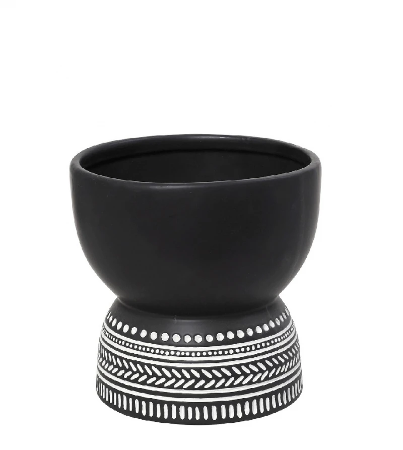 Διακοσμητικό μπωλ κεραμικό σε μαύρο χρώμα με σχέδιο tribal από την ESPIEL - Διαστάσεις: 20,5x20εκ.