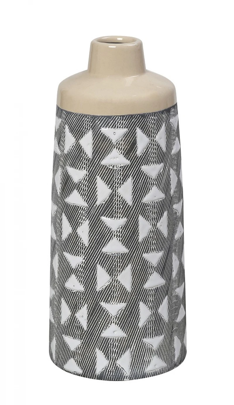 Βάζο κεραμικό σε γκρι-μουσταρδί χρώμα από την ESPIEL - Διαστάσεις: 15,5x39εκ.