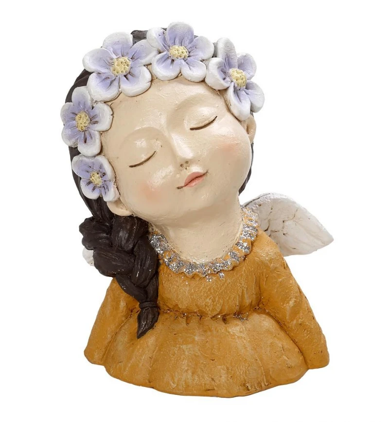Διακοσμητική επιτραπέζια φιγούρα, νεράιδα με στεφάνι, polyresin σε πορτοκαλί χρώμα από την ESPIEL - Διαστάσεις: 19,5x18x24εκ.