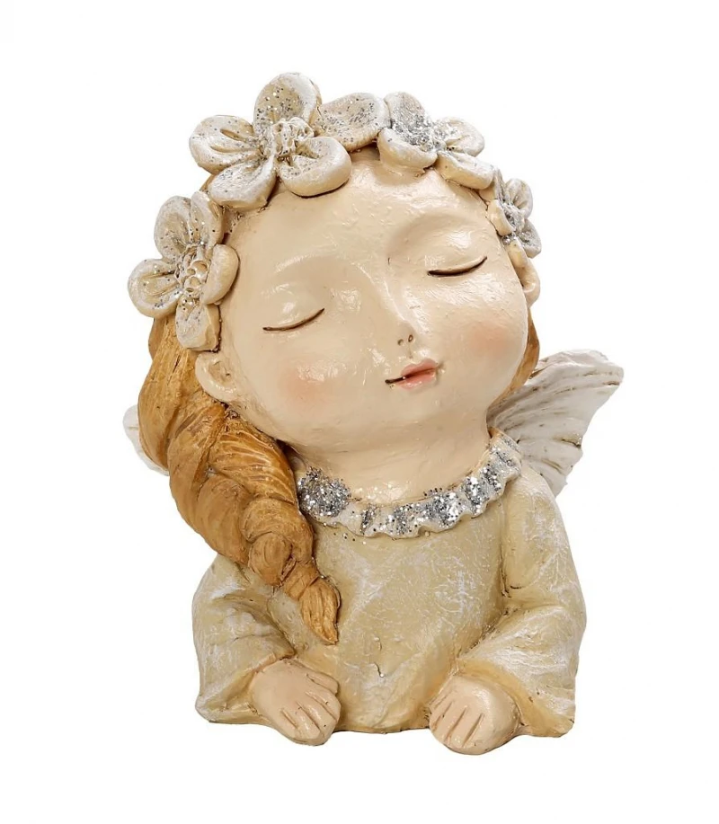 Διακοσμητική επιτραπέζια φιγούρα, νεράιδα με στεφάνι, polyresin σε μπεζ χρώμα από την ESPIEL - Διαστάσεις: 13x12x15εκ.