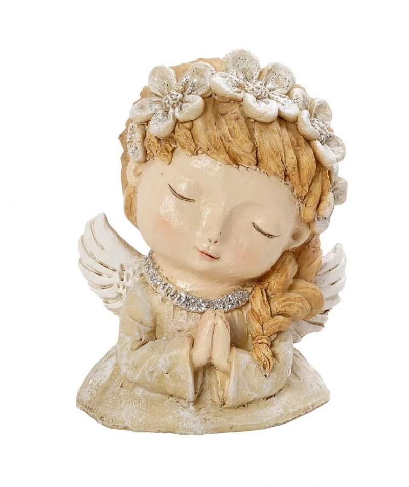 Διακοσμητική επιτραπέζια φιγούρα, νεράιδα με στεφάνι, polyresin σε μπεζ χρώμα από την ESPIEL - Διαστάσεις: 14x12x17,5εκ.