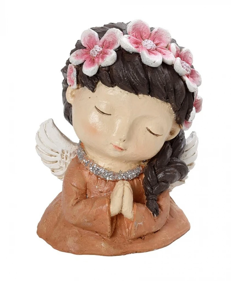 Διακοσμητική επιτραπέζια φιγούρα, νεράιδα με στεφάνι, polyresin σε πορτοκαλί χρώμα από την ESPIEL - Διαστάσεις: 14x12x17,5εκ.