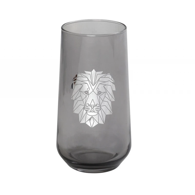 Ποτήρι νερού σε ασημί χρώμα και σχέδιο λιοντάρι της σειράς jungle από την ESPIEL - Χωρητικότητας: 470ml - Διαστάσεις: 7,8x14,8εκ. - Η ελάχιστη ποσότητα αγοράς για αυτό το προϊόν είναι 6τμχ.