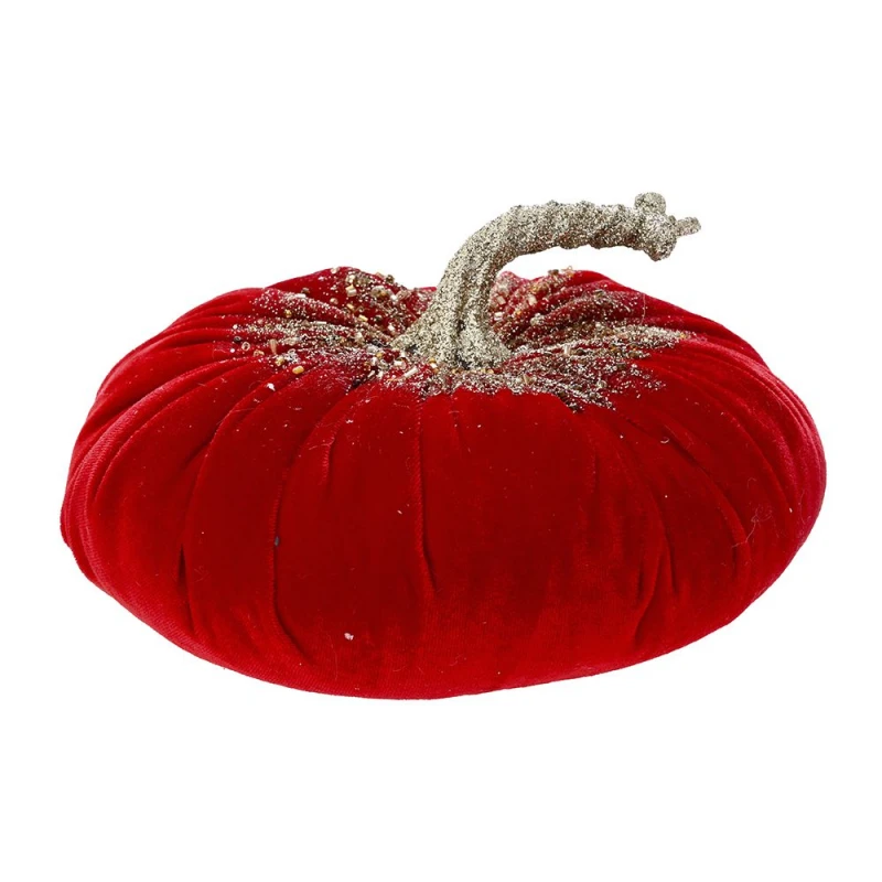 Διακοσμητική επιτραπέζια κολοκύθα βελούδινη σε κόκκινο χρώμα από την iliadis - Διαστάσεις: 19x14,5εκ.