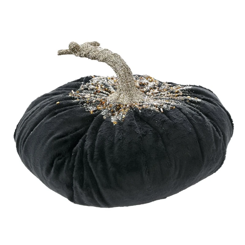 Διακοσμητική επιτραπέζια κολοκύθα βελούδινη σε μαύρο χρώμα από την iliadis - Διαστάσεις: 19x14,5εκ.