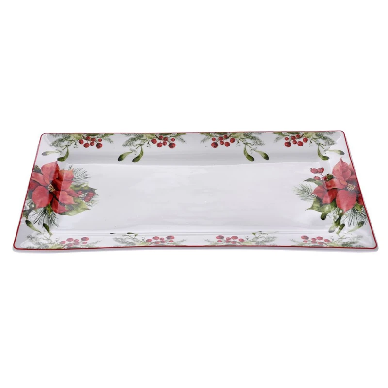 Χριστουγεννιάτικη Πιατέλα Μακρόστενη Πορσελάνης Poinsettia iliadis 30x15εκ. 79878