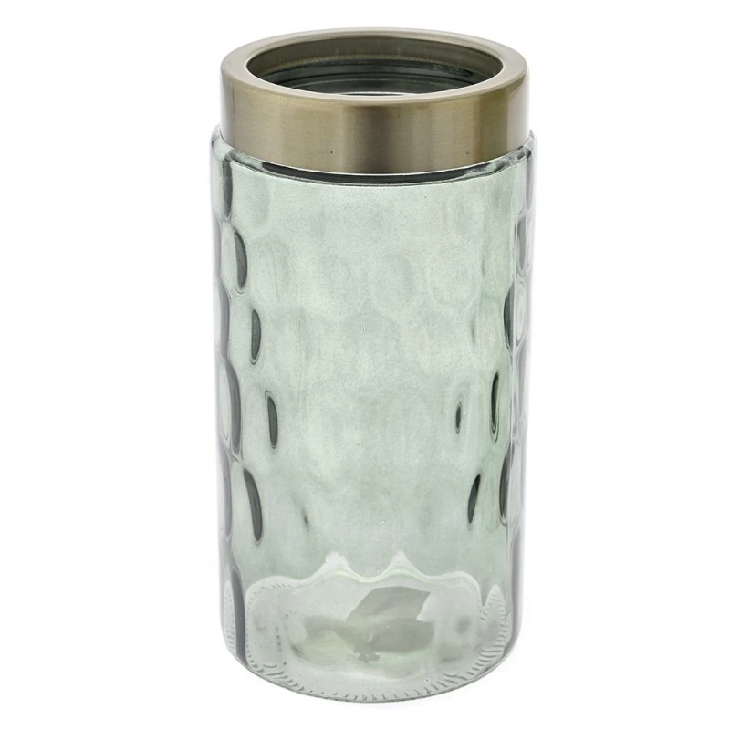 Δοχείο γυάλινο σε σμαραγδί χρώμα με μεταλλικό καπάκι από την iliadis - Διαστάσεις: 10x22εκ. - Η ελάχιστη ποσότητα αγοράς για αυτό το προϊόν είναι 2τμχ.