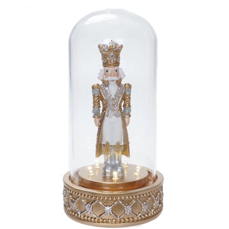 Χριστουγεννιάτικος διακοσμητικός επιτραπέζιος καρυοθραύστης, μέσα σε γυάλινο θόλο, polyresin σε χρυσό χρώμα από την iliadis - Διαστάσεις: 23εκ.