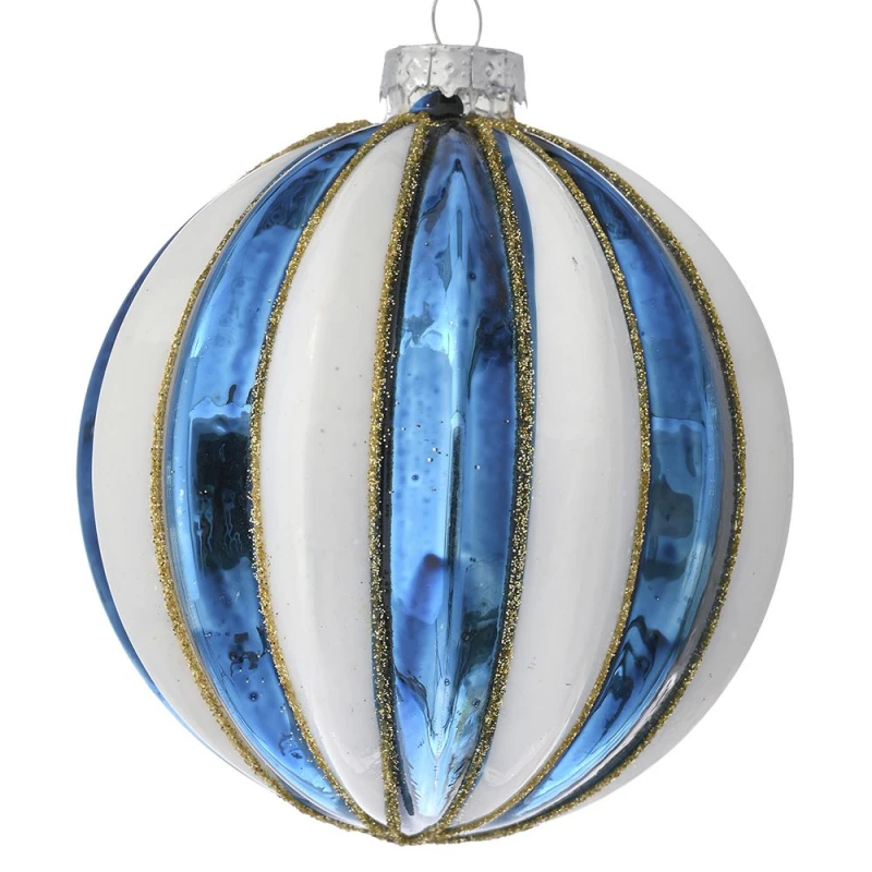 Σετ μπάλες 4τμχ γυάλινες σε μπλε-λευκό χρώμα από την iliadis - Διαστάσεις: 10εκ.