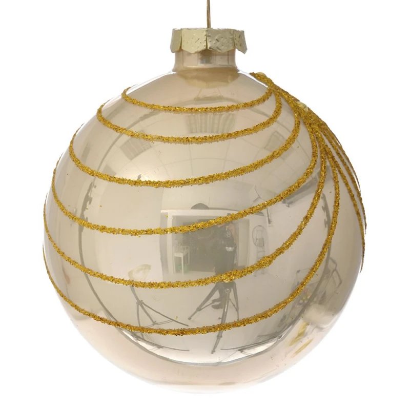 Σετ μπάλες 6τμχ γυάλινες σε χρυσό χρώμα με ρίγες από την iliadis - Διαστάσεις: 8εκ. - Η ελάχιστη ποσότητα αγοράς για αυτό το προιόν είναι 2τμχ.