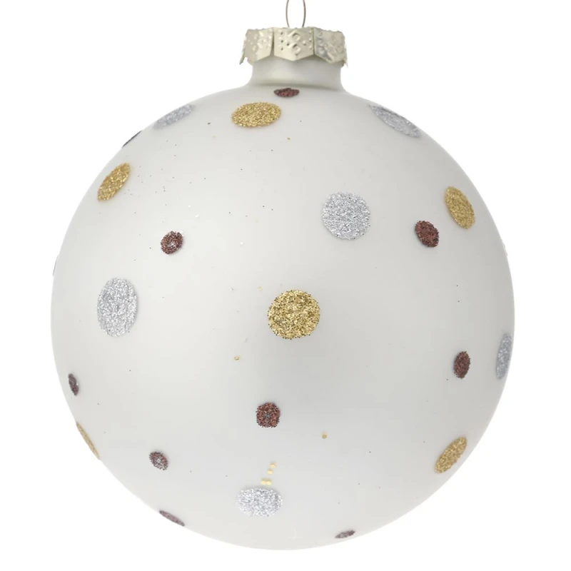 Σετ μπάλες 4τμχ γυάλινες με πουά glitter σε διάφορα χρώματα από την iliadis - Διαστάσεις: 10εκ. - Η ελάχιστη ποσότητα αγοράς για αυτό το προιόν είναι 2τμχ.
