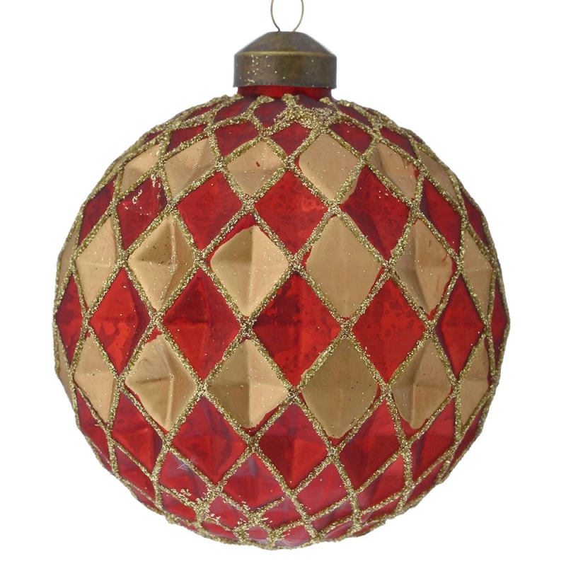 Σετ μπάλες 4τμχ γυάλινες σε κόκκινο-χρυσό χρώμα από την iliadis - Διαστάσεις: 10εκ. - Η ελάχιστη ποσότητα αγοράς για αυτό το προιόν είναι 2τμχ.