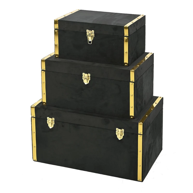 Κουτί Σετ 3τμχ Ξύλινο-Υφασμάτινο Μαύρο-Χρυσό iliadias 60x40x32εκ. 79168