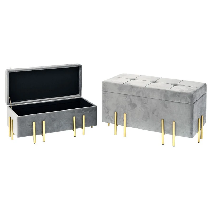 Ταμπουρέ σετ 2τμχ υφασμάτινο με μεταλλικά πόδια σε γκρι χρώμα από την inart - Διαστάσεις: 80x43x46εκ., 70x36x33εκ.