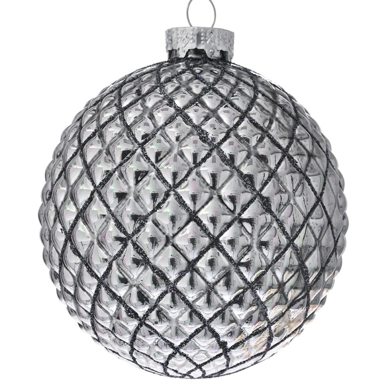 Σετ μπάλες 6τμχ γυάλινες, ανάγλυφες, σε ανθρακί χρώμα από την iliadis - Διαστάσεις: 8εκ. - Η ελάχιστη ποσότητα αγοράς για αυτό το προιόν είναι 2τμχ.