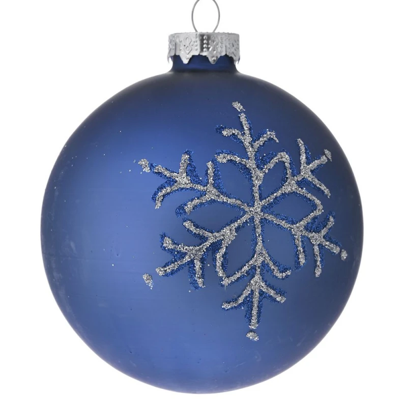 Σετ μπάλες 6τμχ γυάλινες σε μπλε χρώμα με χιονονιφάδα από την iliadis - Διαστάσεις: 8εκ. - Η ελάχιστη ποσότητα αγοράς για αυτό το προιόν είναι 2τμχ.