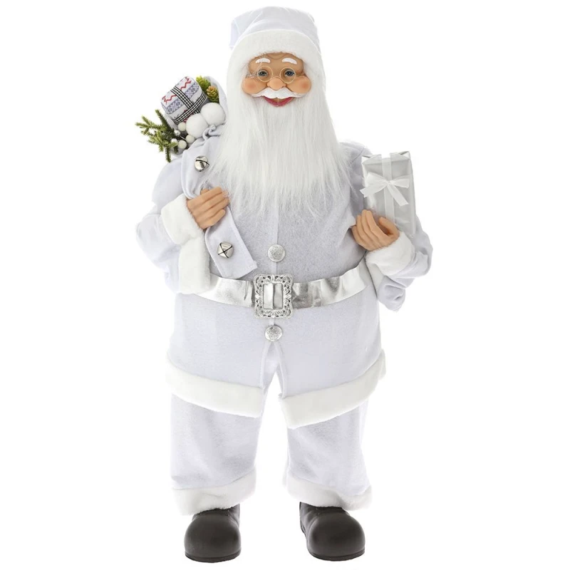 Χριστουγεννιάτικος διακοσμητικός επιδαπέδιος Άγιος Βασίλης σε λευκό χρώμα με κάπα από την iliadis - Διαστάσεις: 80εκ.