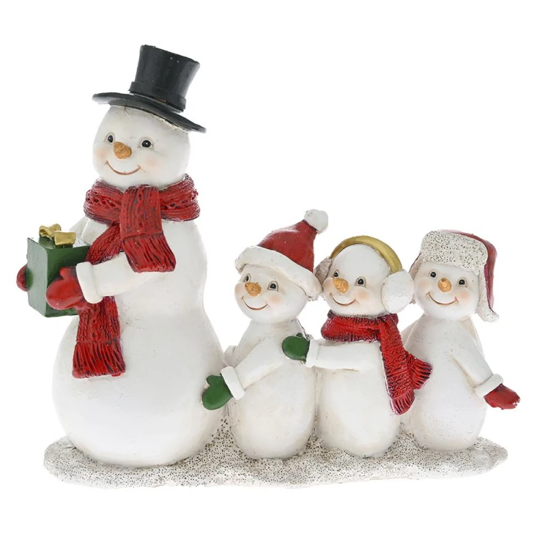 Χριστουγεννιάτικος διακοσμητικός επιτραπέζιος χιονάνθρωπος με οικογένεια, polyresin, σε λευκό χρώμα από την iliadis - Διαστάσεις: 19x8x16εκ.