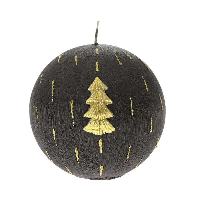 Χριστουγεννιάτικο κερί σε μαύρο χρώμα, διακοσμημένο με δεντράκι, από την iliadis: 10εκ.