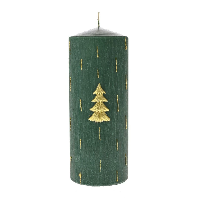 Χριστουγεννιάτικο κερί σε πράσινο χρώμα, διακοσμημένο με δεντράκι, από την iliadis: 7x18εκ.