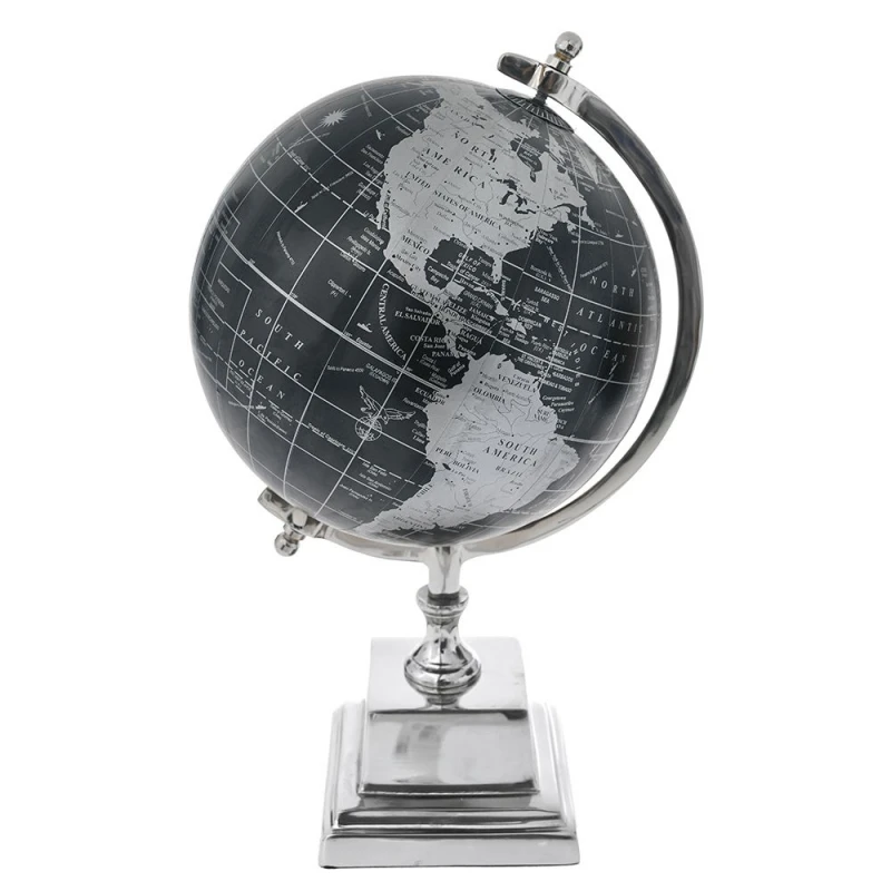 Διακοσμητική επιτραπέζια υδρόγειος σφαίρα νίκελ σε μαύρο χρώμα από την iliadis - Διαστάσεις: 23x36εκ.