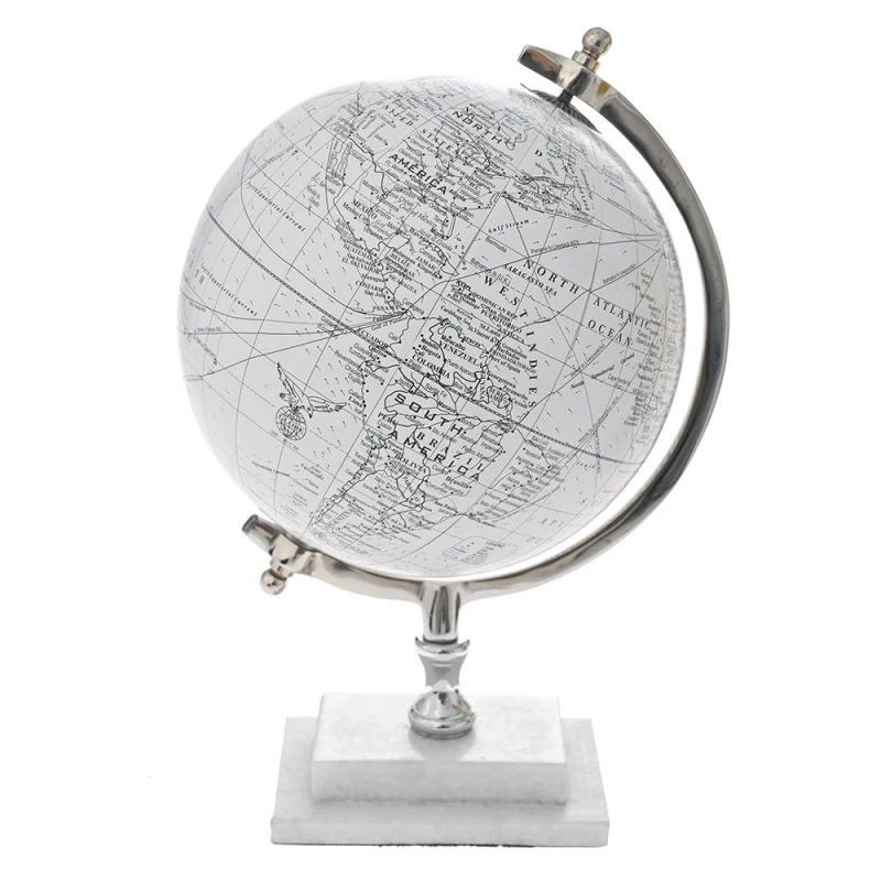 Διακοσμητική επιτραπέζια υδρόγειος σφαίρα νίκελ από την iliadis - Διαστάσεις: 20x35εκ.