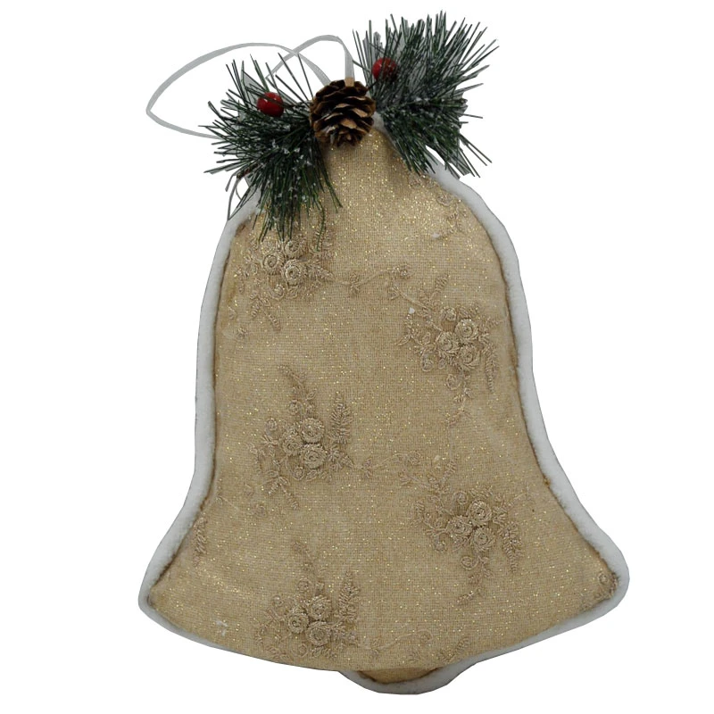 Χριστουγεννιάτικη διακοσμητική καμπάνα κρεμαστή υφασμάτινη σε μπεζ χρώμα από την Royal Art Collection - Διαστάσεις: 24εκ.