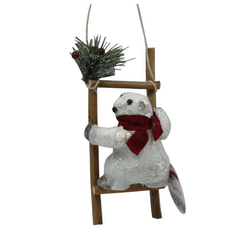 Χριστουγεννιάτικη διακοσμητική επιτοίχια αρκούδα υφασμάτινη σε λευκό χρώμα από την Royal Art Collection - Διαστάσεις: 20εκ.