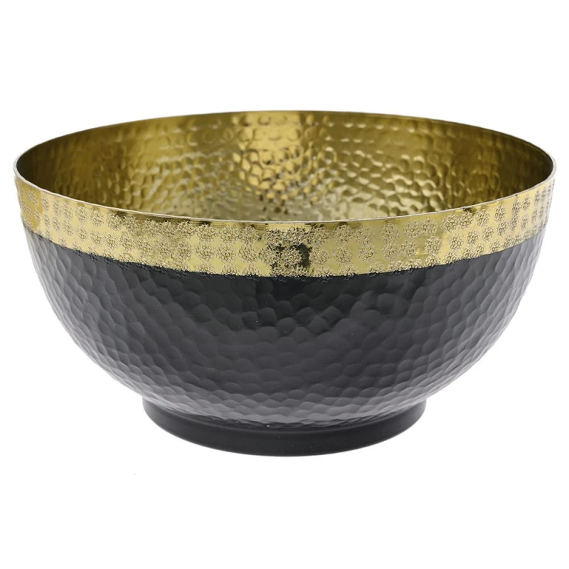 Διακοσμητικό μπωλ αλουμινίου, σφυρήλατο σε χρυσό-μαύρο χρώμα από την iliadis - Διαστάσεις: 28x13εκ.
