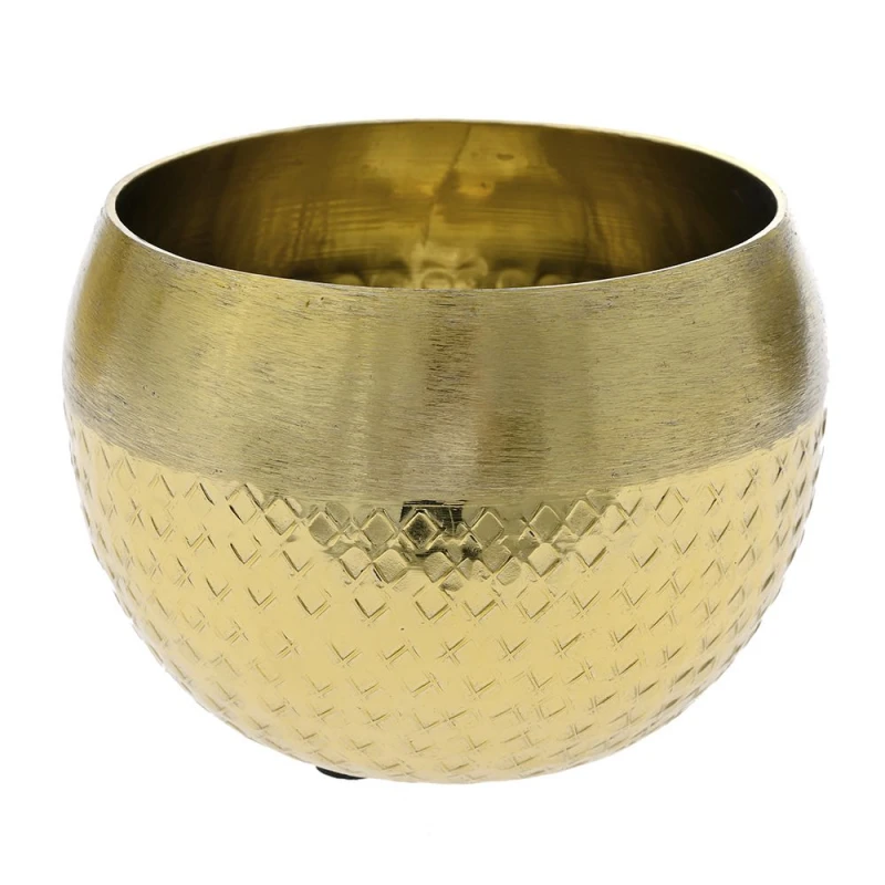 Διακοσμητικό μπωλ, νίκελ με σφυρήλατη την μισή επιφάνεια, σε χρυσό χρώμα από την iliadis - Διαστάσεις: 16x12,5εκ.