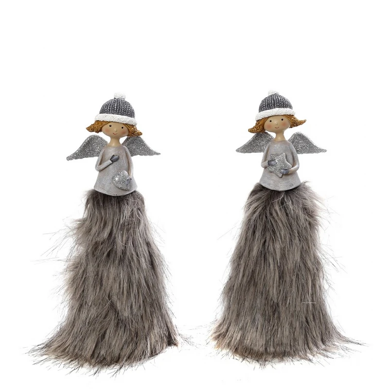 Χριστουγεννιάτικη διακοσμητική γυναικεία φιγούρα με φούστα polyresin σε γκρι χρώμα από την ESPIEL - Διαστάσεις: 12x9x25εκ. Η ελάχιστη ποσότητα αγοράς για αυτο το προιόν είναι 2τμχ.