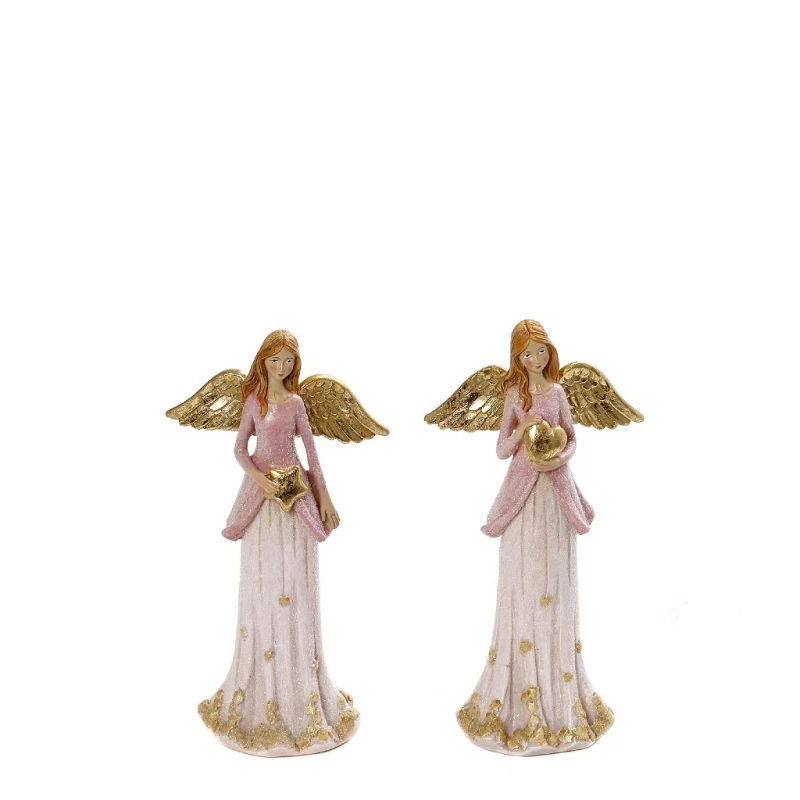 Χριστουγεννιάτικο διακοσμητικό αγγελάκι polyresin σε ροζ-χρυσό χρώμα από την ESPIEL - Διαστάσεις: 9x5,5x19εκ. Η ελάχιστη ποσότητα αγοράς για αυτο το προιόν είναι 2τμχ.