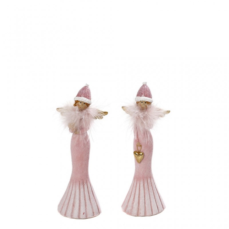Χριστουγεννιάτικο διακοσμητικό αγγελάκι polyresin σε ροζ χρώμα από την ESPIEL - Διαστάσεις: 7x5x18,5εκ. Η ελάχιστη ποσότητα αγοράς για αυτο το προιόν είναι 2τμχ.