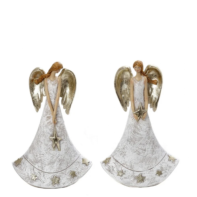 Χριστουγεννιάτικο διακοσμητικό αγγελάκι με φτερά polyresin σε λευκό χρώμα από την ESPIEL - Διαστάσεις: 12x6,5x18,5εκ. Η ελάχιστη ποσότητα αγοράς για αυτο το προιόν είναι 2τμχ.