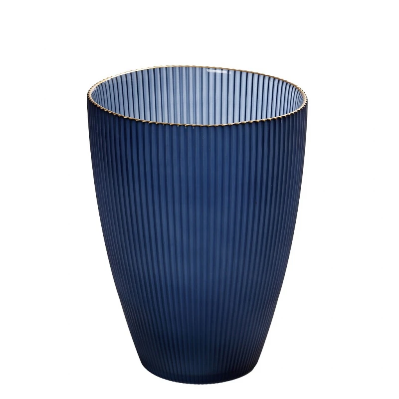 Βάζο γυάλινο σε μπλε χρώμα και με χρυσό χείλος της σειράς mystery από την ESPIEL - Διαστάσεις: 18x24εκ.