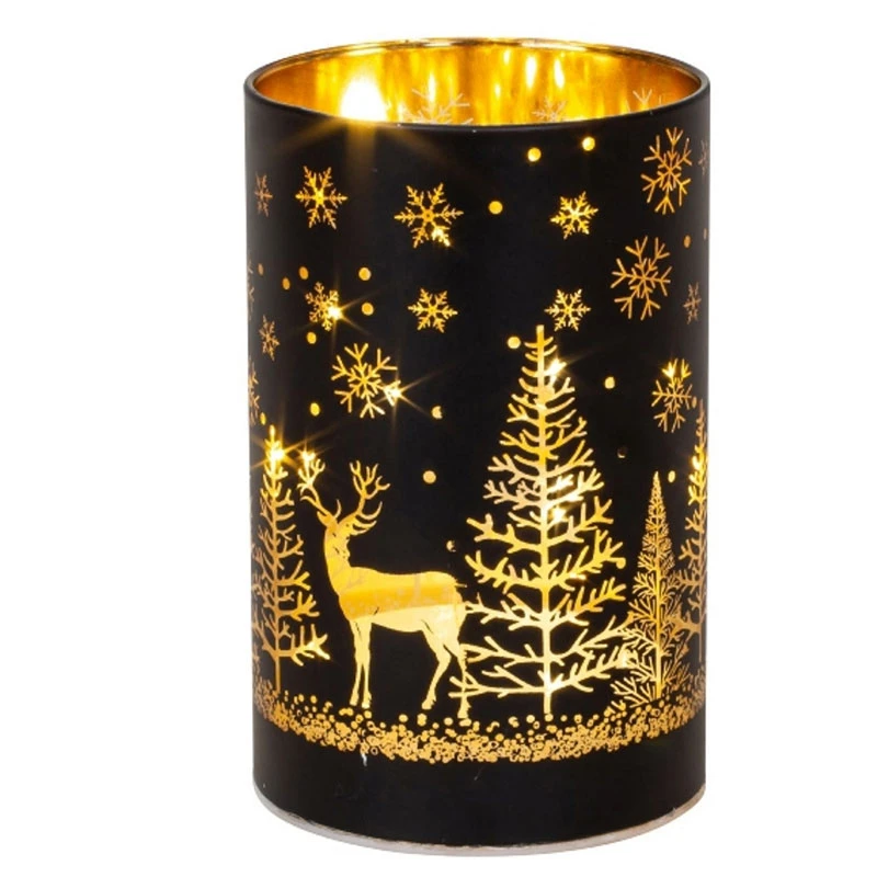 Χριστουγεννιάτικο κηροπήγιο γυάλινο σε μαύρο χρώμα από την Royal Art Collection - Διαστάσεις: 9x14εκ.
