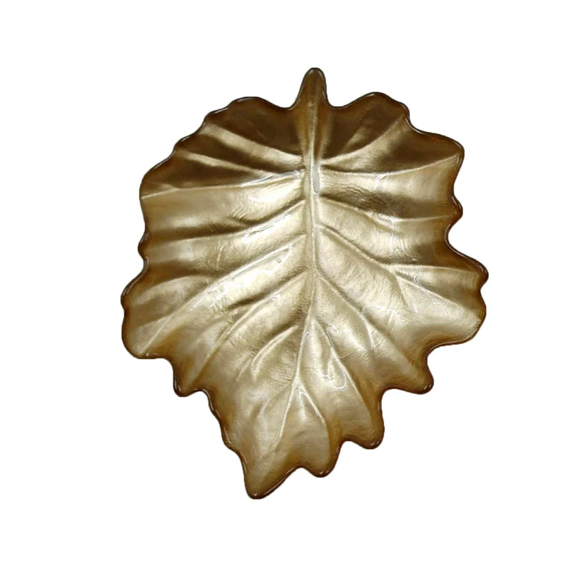Χριστουγεννιάτικη διακοσμητική πιατέλα γυάλινη, σε σχήμα φύλλου και σε χρυσό χρώμα από την Royal Art Collection - Διαστάσεις: 18εκ.