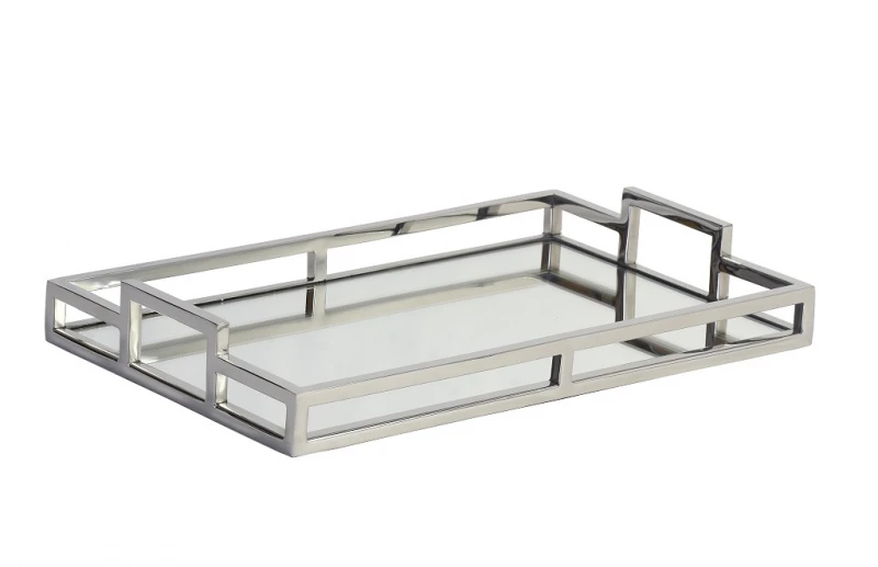 Δίσκος σερβιρίσματος ορθογώνιος με καθρέπτη, μεταλλικός σε ασημί χρώμα από την ESPIEL - Διαστάσεις: 41x26x5εκ.